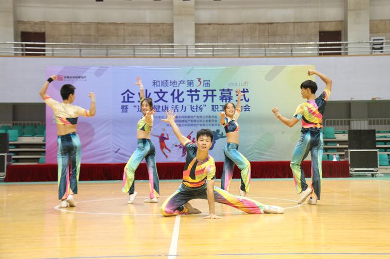 由蚌埠學院的Rianbow啦啦隊帶來的啦啦操表演成功點燃了整個舞臺,來自和順地產機關及所屬3家單位的6名職工現場演唱的《我的舞臺》更是掀起了開幕式表演環節的高潮。