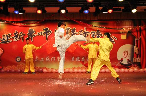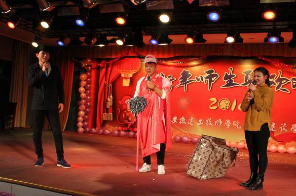 12月30日晚,安徽建工技師學(xué)院2016年迎新年師生聯(lián)歡晚會在學(xué)校禮堂隆重舉行。校長張衛(wèi)東、黨委書記錢森林、安徽建工建筑材料有限公司副總經(jīng)理徐友修、工會主席韓振遠,安徽建工技師學(xué)院副校長任建設(shè)、周元清、呂良玉,紀委書記、工會主席龔維加與各處室、系部負責(zé)同志和廣大師生員工、部分離退休老同志參加了聯(lián)歡。