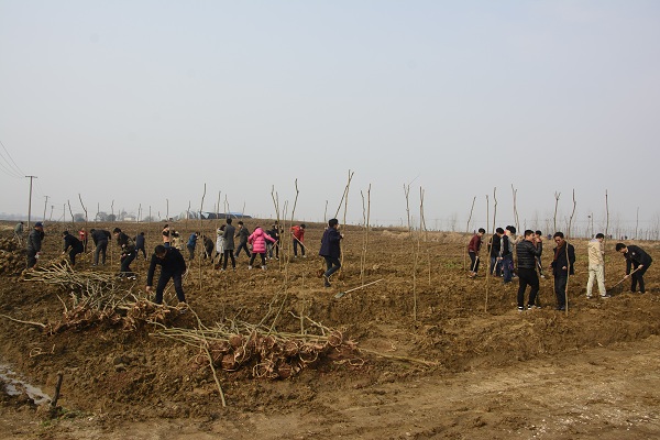 長臨河古鎮(zhèn)位于合肥市東郊,肥東縣南部,西與合肥市濱湖新區(qū)僅一河之隔。經(jīng)過近一個小時車程后,大家直接奔赴劃定的植樹區(qū)域。大家互相協(xié)助,挖坑、扶樹、松土、埋樹,動作敏捷,一氣呵成,共義務種植樹苗400余棵。一棵棵樹苗在大家的辛勤培植下,挺立在溫暖的春陽,原本比較荒涼的土地頓時顯出了生機。