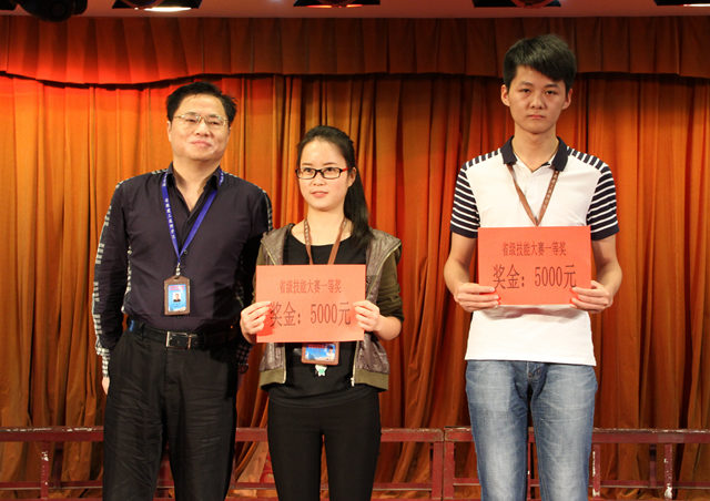 5月27日下午,我校在學校禮堂舉行技能大賽頒獎典禮。校長張衛東,黨委書記錢森林,副校長任建設、周元清、呂良玉,紀委書記、工會主席龔維加和學生處、三系負責同志參加了頒獎典禮。周元清副校長在典禮上宣讀了《關于職業院校技能大賽獲獎情況的通報》,并對全校師生提出了一下幾點希望:希望獲獎的選手戒驕戒躁,再接再厲,再創佳績;希望廣大學生向獲獎同學學習,學習他們刻苦學習鉆研精神;希望廣大教職員工繼續深化教學改革,強化學生綜合職業能力的培養,不斷加強內涵建設,提高人才培養質量,為實現“十三五”規劃做出更大貢獻。最后,學校領導給我校在2015年國家級和省級技能大賽上獲獎的同學頒發了獎金,以資鼓勵。