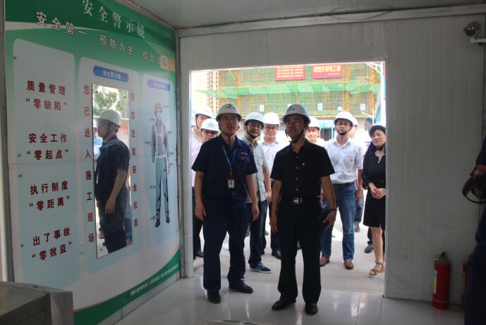費(fèi)書記一行首先深入施工現(xiàn)場參觀了解工程建設(shè)情況,并不時(shí)詢問青年職工的生活情況及存在的困惑和問題。費(fèi)書記為整個(gè)施工現(xiàn)場布局整齊、場地整潔、環(huán)境綠化美觀及工程創(chuàng)新技術(shù)的應(yīng)用表示高度贊賞。