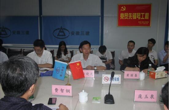 為深入貫徹中央群團(tuán)工作會(huì)議精神,進(jìn)一步落實(shí)團(tuán)干聯(lián)系團(tuán)員青年的制度,有序有力推動(dòng)共青團(tuán)工作改革創(chuàng)新, 6月23日,省國資委群眾工作處副處長、團(tuán)工委副書記費(fèi)智鋼,應(yīng)邀到合肥市二院項(xiàng)目部參加安徽三建團(tuán)委專題開放日活動(dòng),并為公司團(tuán)委獲得2015年度安徽省“五四紅旗團(tuán)委”授牌。省國資委團(tuán)工委龐玉泉、建工集團(tuán)工會(huì)主席、公司黨委書記徐曉光、建工集團(tuán)團(tuán)委書記王詩旵及公司紀(jì)委書記黃麗春、團(tuán)委書記張鑫等陪同。公司在肥團(tuán)支部負(fù)責(zé)人、項(xiàng)目一線青年代表共30余人參加了開放活動(dòng)。