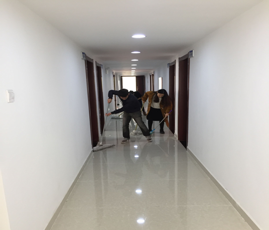 16名青年志愿者一早就來到新辦公樓下集合,領取清掃工具后便開始抓緊時間打掃衛生。擦窗戶,掃地,拖地,洗拖把,分工勞動,大家配合默契,效率倍增,一個上午的時間就將新辦公樓打掃一新。勞動結束,看著干凈整潔的新辦公室,微風吹過,窗明幾凈,團員青年們心中涌起滿滿的成就感。