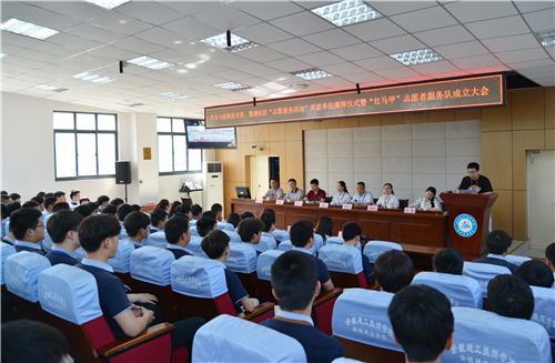 為推進學院區域化團建工作,以建設文明校園與和諧社區為目標,堅持“完善自我,輻射他人”的服務理念,堅守“奉獻、友愛、互助、進步”的服務宗旨,為社會提供內容豐富、形式多樣的服務,營造濃厚的志愿服務氛圍,使志愿服務精神深入人心,5月22日下午,安徽建工技師學院汽車與機電技術系在學院錄播室開展與望湖社區共建“志愿服務活動”單位揭牌儀式暨“紅馬甲”志愿者服務隊成立大會。學院德育工作部主任蘇曉紅,汽車與機電技術系黨支部書記、主任羅安全,望湖社區黨總支副書記劉東升,學院德育工作部副主任、團委書記周曉瑛等學院、社區領導出席此次大會。