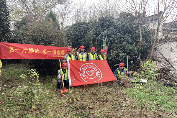 市政分公司團支部組織團員青年在淝河鎮席井村開展植樹活動。放眼席井村,春山可望,草木萌發,大家或兩人一組、或三人一隊,挖基坑、拌肥料、扶苗木等環節緊密銜接。一番辛勤的勞作后,20余株香樟樹苗在此扎根。