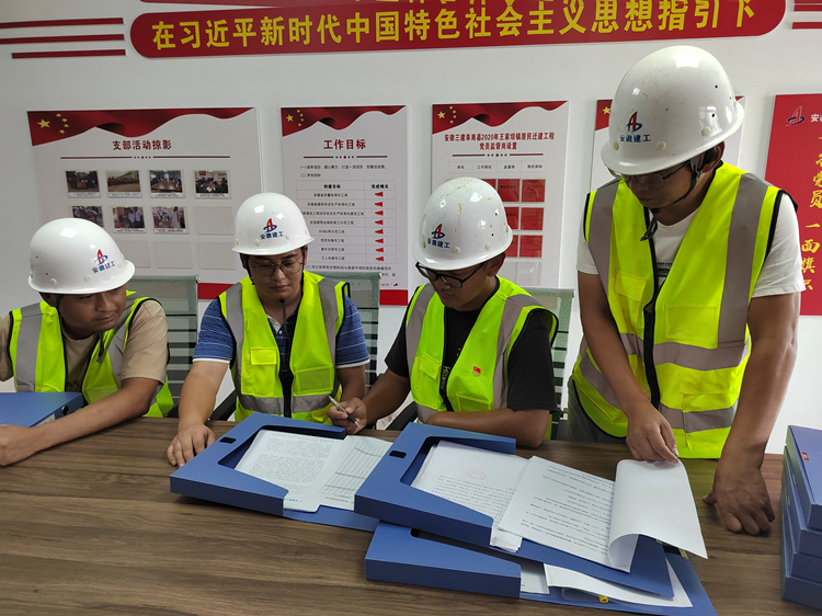 今年8月習近平總書記考察安徽第一站來到王家壩時,要求各級黨委和政府引導和鼓勵村民逐步搬離出去,確保蓄洪區人口不再增多。安徽三建阜南王家壩項目作為主要淮河行蓄洪居民遷建安置工程的標志性項目,建好該項目意義重大。項目黨支部扎實開展黨史學習教育活動,項目黨員充分發揮“舍小家,保大家”的王家壩精神,時刻沖在第一位,發揮先鋒模范作用,時刻謹記黨員職責和工作分工。在關鍵環節、關鍵領域、關鍵崗位設置黨員監督崗,確保了項目成本、安全、質量、廉潔管理無風險,保證了搶工的質量。在項目搶工過程中,黨員同志總是主動堅持跟班作業,堅守在現場攻堅克難第一線,總是帶頭加班“挑燈夜戰”,耕耘在突破“卡脖子”難題最前沿,堅持將黨史學習過程中汲取的精神養分,轉化為推動重點民生項目建設的強大行動力。