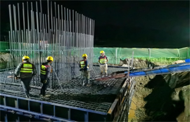 2021年以來,為搶工期、趕進度,落實“縣縣通高速”攻堅行動的總體要求,項目部積極響應公司“學黨史、保安康、搶工期、爭一流”勞動競賽號召,按照總體施工組織設計及節點施工計劃,分解下達到日、旬、月、季度施工生產計劃,倒排施工工期,緊盯目標任務不放松。同時,項目全體參建人員咬緊牙關、鼓足干勁、通宵達旦,連續作戰,克服疫情對工期影響,開啟了24小時三班倒連續作業模式,日夜奮戰、揮汗如雨。