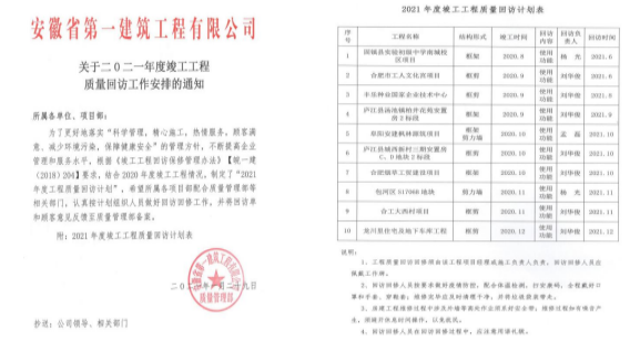 回訪維修重服務。活動期間,安徽一建、安徽二建、安徽三建等單位紛紛組織對承建項目進行檢查、回訪、維修,并建立大客戶回訪數據庫,加強與客戶溝通,增強客戶對公司的滿意度,牢牢樹立全心全意為用戶提供優質服務的安徽建工一流企業形象,創造“服務換合作”的機遇。
