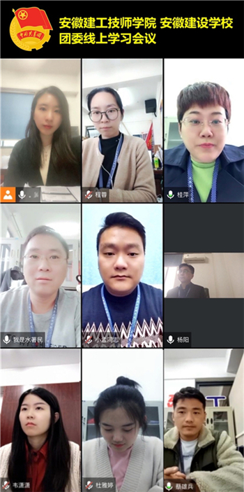 11月15日下午,安徽建工技師學(xué)院團(tuán)委組織召開黨的十九屆六中全會(huì)精神專題學(xué)習(xí)會(huì),望湖、水湖兩個(gè)校區(qū)的團(tuán)總支負(fù)責(zé)人和團(tuán)干共計(jì)11人通過騰訊會(huì)議進(jìn)行了學(xué)習(xí),會(huì)議由團(tuán)委副書記桂萍主持,德育工作部主任楊繼強(qiáng)應(yīng)邀參加了會(huì)議。