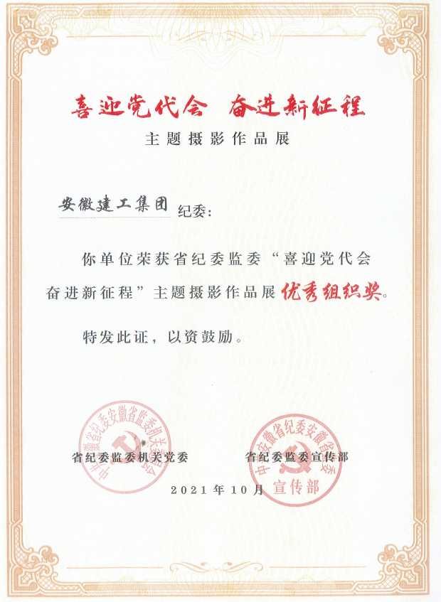 近日,省紀委監委舉辦“喜迎黨代會 奮進新征程”主題攝影作品展,集團紀委高度重視,認真響應上級號召,精心組織,廣泛宣傳,優中選優,積極報送攝影作品,多幅作品在省紀委監委機關公開展出并獲獎,因成績突出,集團紀委榮獲優秀組織獎。