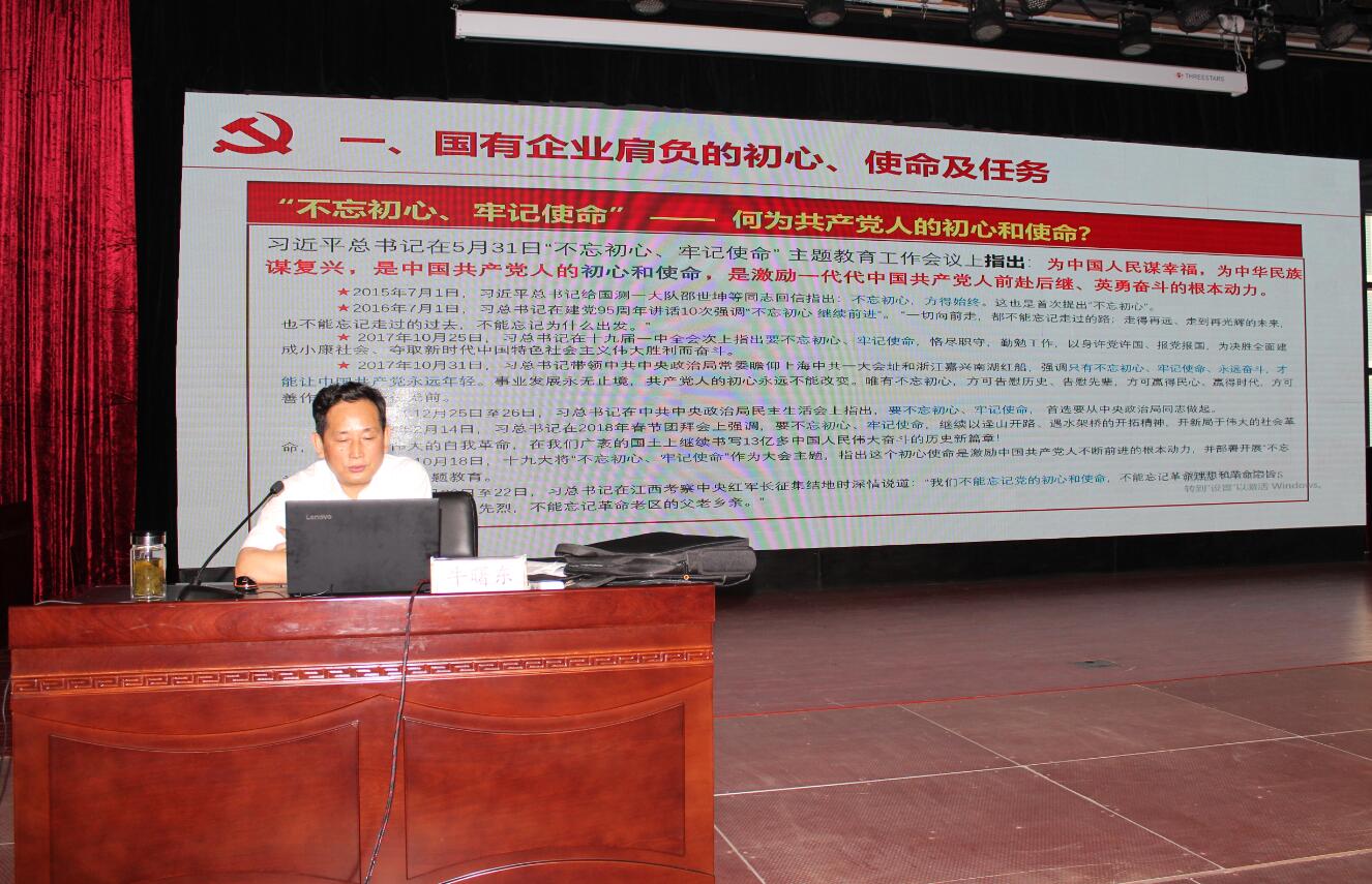 牛曙東圍繞主題,分別從國有企業肩負的初心、使命及任務,當前兩級機關黨建工作存在的問題,國企加強與改進黨的領導和黨的建設的著力點三個方面,為與會人員上了一堂具有生動性、針對性和指導性的黨課。