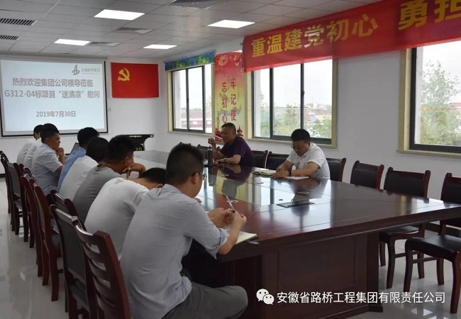 7月30日,建工控股黨委委員、董事、副總經理楊廣亮到六安G312項目開展“送清涼”慰問活動,并深入調研項目管理工作。建工控股發展規劃部部長余志剛陪同調研。