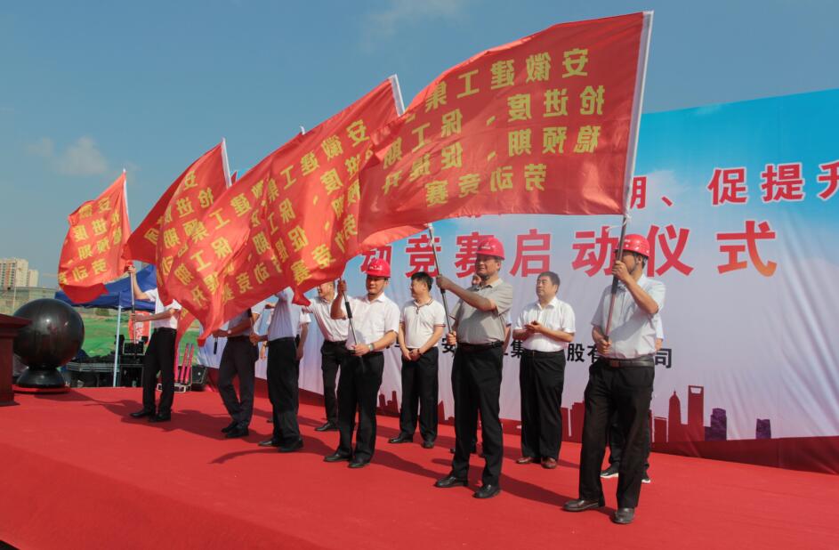 啟動儀式最后,蒙城縣主要領導和集團公司有關領導共同按下啟動球,并向參賽單位授旗,標志著安徽建工集團“搶進度、保工期、穩預期、促提升”勞動競賽正式啟動。