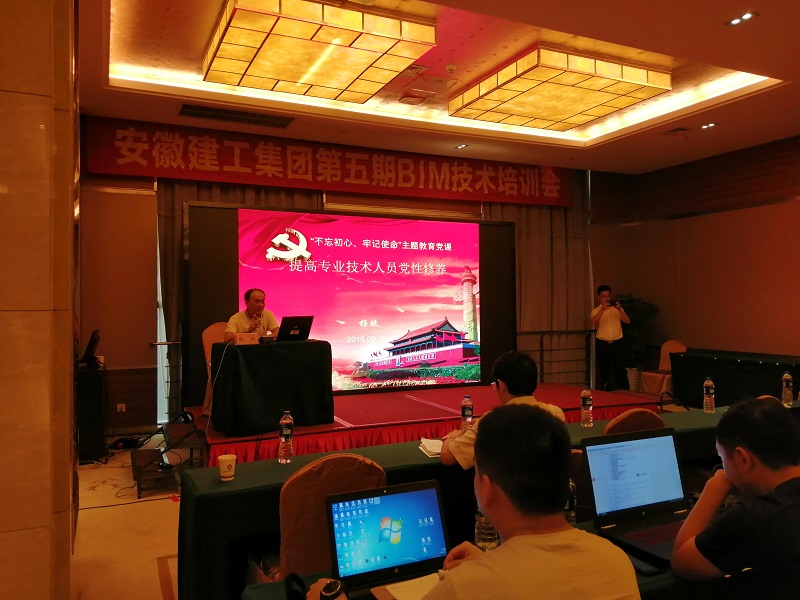 9月18日至9月24日,安徽建工集團股份公司在肥東安徽水利和順大酒店舉辦了第五期BIM技術培訓。本次培訓為封閉式高級培訓,由總工辦與人力資源部合辦。參培的55名技術骨干,主要由所屬單位從參加過集團公司第三期、第四期BIM技術培訓且考核成績較好的人員推薦組成。股份公司總工程師楊斌參加開班儀式并結合“不忘初心、牢記使命”主題教育為學員上了《提高專業技術人員黨性修養》黨課。