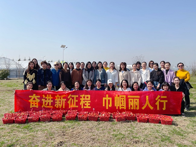 公司機關組織女職工開展“奮進新征程 巾幗麗人行”戶外采風活動。大家提起小籃子走進草莓采摘棚,一顆顆鮮紅欲滴的草莓,在綠葉的襯托下顯得格外誘人。大家零距離感受田園風光,品嘗著草莓的香甜,體驗著采摘的樂趣,歡聲笑語洋溢在采摘大棚。