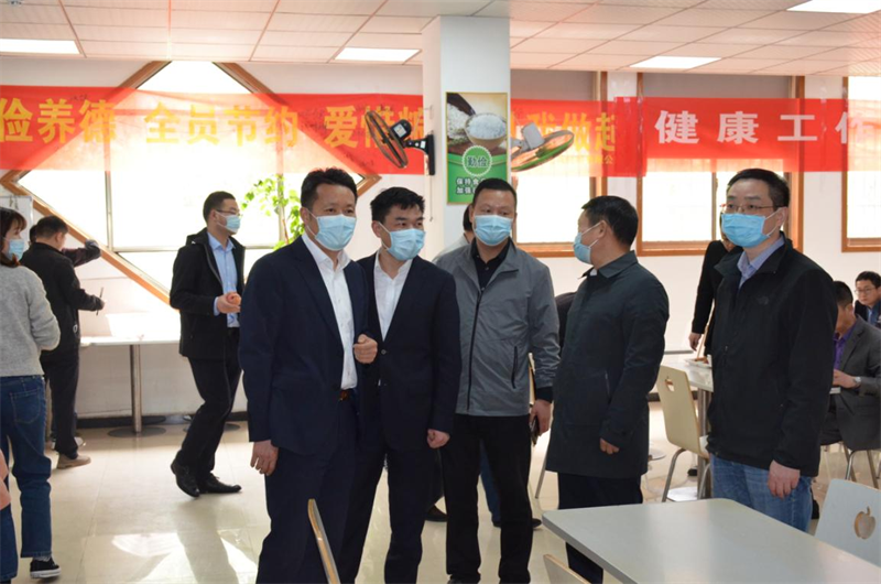 會后,包保督導組一行深入建材科技機關職工食堂實地查看衛生消毒、食材采購、錯峰就餐、后勤人員防護等情況。