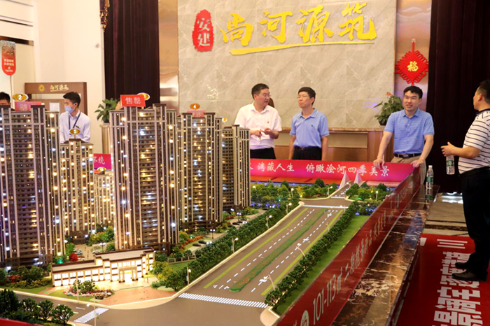 王厚良一行先后視察了安建地產·漢城源筑及安建地產·尚河源筑兩個項目的施工現場、樣板房和營銷中心,聽取了項目負責人對現場情況的匯報,詳細了解項目開發建設情況,隨后召開座談會。