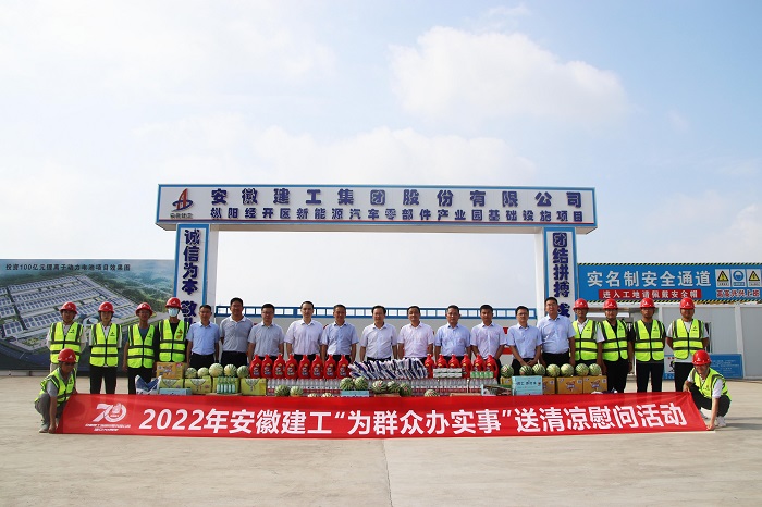 7月18日上午,建工股份黨委副書記、總經理、董事李有貴到安建總承包承建的樅陽新能源汽車零部件產業園基礎設施建設EPC項目開展建工控股第一次黨代會精神宣講暨“送清涼”活動。