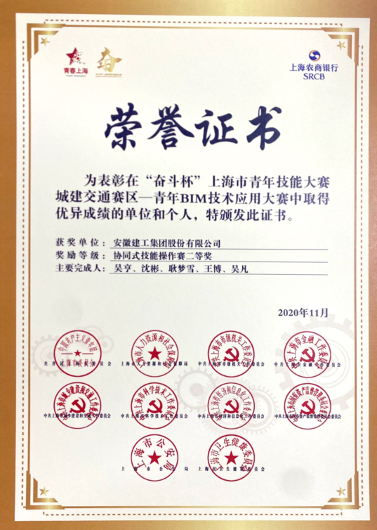 本次大賽“協同式技能操作賽”共有63個團隊報名參賽。“筑夢小隊”能在此次大賽中能獲得二等獎的優異成績,得益于集團公司近幾年大力的推行BIM技術應用,展示了參賽隊員的高超水平。近年來集團公司組織了六次BIM技術專題培訓班和兩次BIM示范工程驗收工作,所屬單位多次在中國建設工程BIM大賽、全國優路杯BIM大賽、安徽省BIM大賽等比賽中獲得優異成績。此次大賽的獲獎將更加激勵集團內從事BIM工作的同事砥礪前行,為集團的更好發展貢獻一份力量。