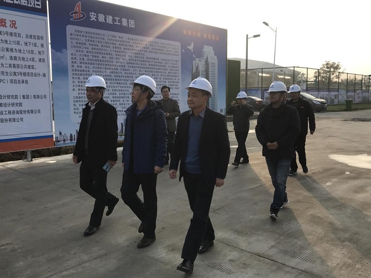 12月12日下午,建工控股黨委委員、股份公司董事長王厚良,安徽理工大學黨委常委、副校長吳照明到安建總承包安理工研究生公寓EPC項目調研指導工作,安徽理工大學基本建設處丁志強處長,安建總承包公司黨委書記張沖、副總經理王軍等參加。