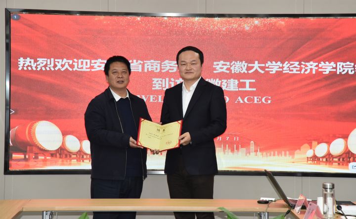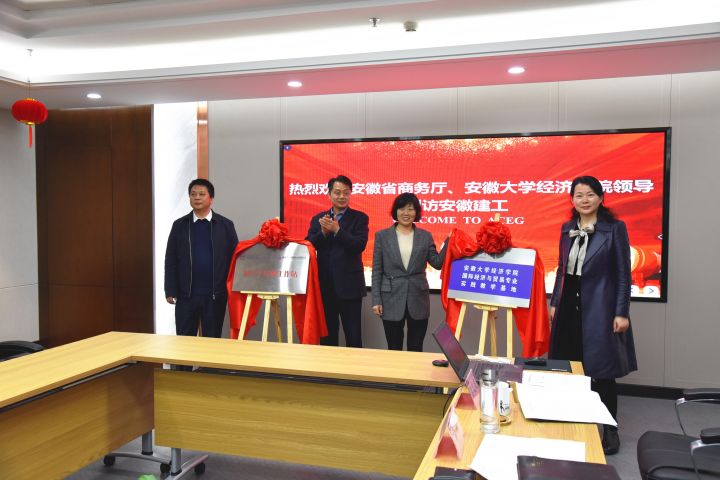 簽約儀式后,孫永彬、田淑英、華德亞、朱金蓉共同為安徽大學(xué)經(jīng)濟(jì)學(xué)院國(guó)貿(mào)專業(yè)實(shí)踐教學(xué)基地及建工股份碩士生導(dǎo)師工作站揭幕,顧廣玲和華德亞為邢應(yīng)梅、胡海濤頒發(fā)安徽大學(xué)國(guó)際商務(wù)碩士專業(yè)學(xué)位研究生兼職導(dǎo)師聘書。