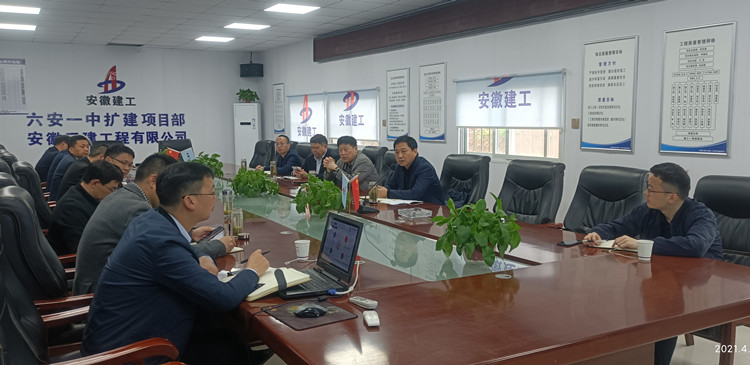 調研中,許克順一行先后到圖書館、高一教學樓等實地查看了現場實施情況,聽取了項目工作匯報,詳細了解了現場安全文明、質量、成本管控情況。安徽三建公司副總經理李建成重點介紹了安徽三建發揮全產業鏈優勢、實行大兵團作戰保障項目建設情況。調研座談會上集團相關部門負責人就成本安全等方面管理經驗與項目管理人員進行了深入交流。