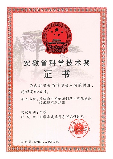 4月12日,安徽省科學技術獎勵暨加快建設科技創新攻堅力量體系推進大會在合肥隆重召開,安徽建工集團申報的2項科技成果獲2020年度安徽省科學技術獎“科技進步獎” 二等獎。