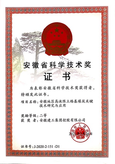 由集團本部牽頭完成的“安徽地區高液限土路基填筑關鍵技術研究與應用”項目,針對安徽地區已建、在建、擬建的高速公路中在路基工程中或多或少的遇到和面臨高液限土的處理問題開展了系統性研究,本項目首創了基于三指標的高液限土分類新方法、各分類區域的處理原則及方法、質量控制新體系,構建了完善的測試理論和高質量的數據采集方法,建立了基于微細結構變化的損傷模型和破壞準則,形成了高液限土路基填筑成套建造技術,創新成果填補了國內外高液限土相關研究的空白,促進了設計、施工、管理水平的進步,推進了公路工程的科技進步。
