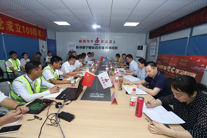 8月10日-11日,股份公司副總經理黃代赴安徽安裝公司蚌埠在建項目宣講習近平總書記“七一”重要講話精神。蚌埠分公司班子成員、全體黨員及項目員工聆聽宣講。安徽安裝公司黨委書記、董事長胡六中主持會議。