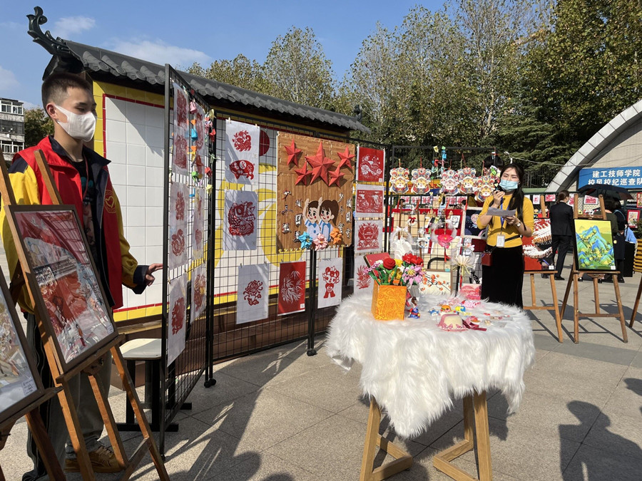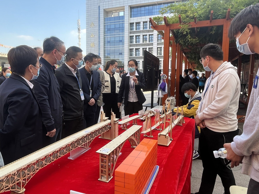 10月14日下午,安徽建工集團團委書記聶猛與集團團委委員一行蒞臨社團成果展現場,學院領導及各部門負責人陪同參觀。學院魯班廣場上,條幅高掛,音樂環繞,禮儀列隊迎賓,龍獅歡騰慶賀,與會嘉賓們在優秀社團老師和學生的講解、引導下,了解學院社團近幾年的建設、發展情況以及取得的成績。成果展上有模型社、漢服社、烘培社、繪畫社、手工社、機械加工社等優秀作品,有參加各類比賽的獲獎證書、獎牌,還有龍獅社、朗誦社、鋼琴社、禮儀社等老師和學生們的現場才藝展示,讓人目不暇接。現場嘉賓、領導和老師們對學院社團百花齊放的狀態,對學生積極向上的青春風采表達了高度的贊美。