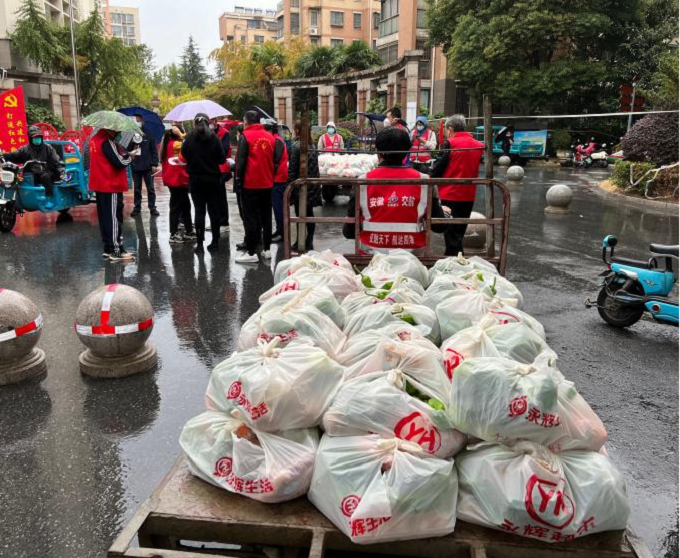 10月26日下午15時,項目部接到嘉山路街道工作人員電話,轄區內美晨雅閣小區急需人員、車輛協助發放居民生活物資。項目部第一時間組織青年志愿者前往該小區提供志愿服務,志愿者們與社區工作人員密切配合,一邊緊張有序地裝卸物資,逐個樓棟進行發放,一邊耐心地安撫居民情緒,維持現場秩序,直至晚上21時,順利完成小區一千多戶居民生活物資的發放,切實保障了群眾的正常生活。