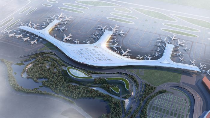 據悉,本項目總建筑面積約36.98萬平方米,合同工期1097日歷天。采用“雙港灣+雙 L”的建筑構型,主樓面寬約 400 米、進深約 180 米。屋頂標高為 43 米,地下一層、 地上四層,主體結構為鋼筋混凝土框架,屋頂為大跨度空間鋼結構體系。項目建成后,預計可滿足2030年合肥新橋國際機場旅客吞吐量4000萬人次的需求,將為建設“翅膀上的安徽”以及提升合肥區域航空樞紐綜合功能提供堅實支撐。
