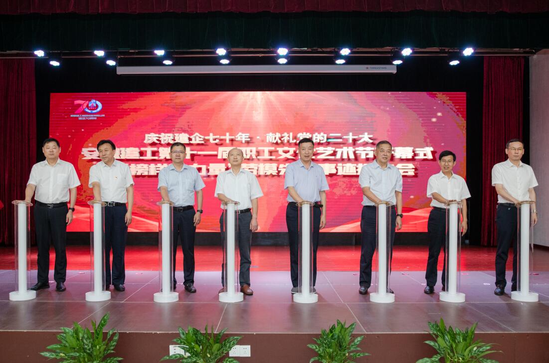 8月12日上午,安徽建工第十一屆職工文化藝術節開幕式暨“榜樣的力量”勞模先進事跡報告會在安建大廈舉行。省住建廳建設建材工會(廳文明辦)主任、一級調研員程德旺應邀出席并講話,建工控股黨委書記、董事長趙時運宣布文化藝術節開幕,并與控股公司領導班子成員共同啟動開幕畫軸。