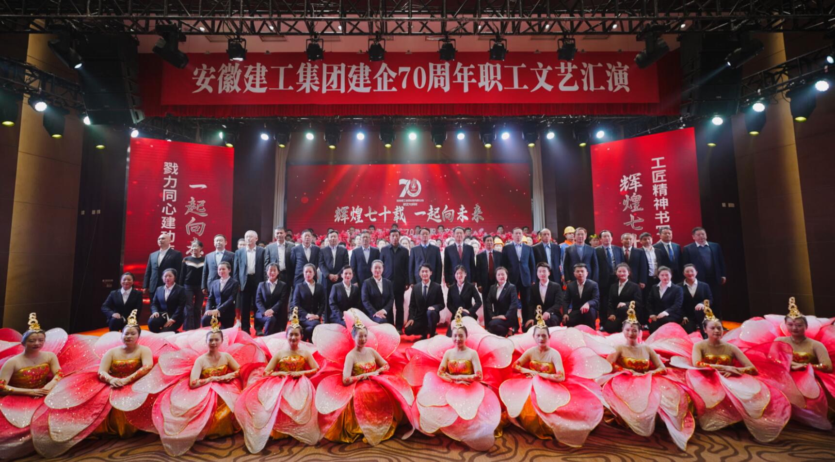 集團領導、外部董事、省建設建材工會領導、職工代表、勞模先進代表等逾400名觀眾現場觀看,2萬余名職工通過網絡直播觀看了演出節目和集團70周年宣傳片,見證了《安徽建工集團70年大事記》發行。