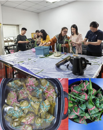 建工二建第一公司工會聯合團支部組織開展“迎端午、包粽子”活動。活動現場,大家說說笑笑圍站在一起,“先拿出兩三片粽葉,把它卷起來,窩一個角,這樣米就不會漏出來……”,大家互相分享著包粽子的經驗,其樂融融,濃濃的節日氣氛拉近了同事們的心。片刻,一片片清香的粽葉、一粒粒晶瑩的糯米,在一雙雙巧手下轉眼變成了玲瓏可愛、各具特色的誘人粽子。大家分享著勞動成果,不僅促進了同事們的交流,增進同事之間的感情,更匯聚起公司的共建力量,激發同事們的生活和工作熱情。