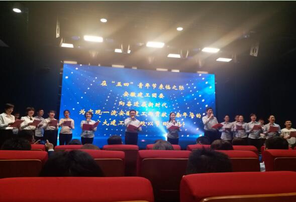 活動(dòng)現(xiàn)場,與會(huì)團(tuán)員青年聽取了項(xiàng)目負(fù)責(zé)人關(guān)于項(xiàng)目建設(shè)情況、青年職工在項(xiàng)目建設(shè)過程中勇當(dāng)生力軍和突擊隊(duì)的情況介紹,共同參觀了創(chuàng)新館展廳。在主題團(tuán)日環(huán)節(jié),突出儀式感召作用,先后舉行了唱國歌、重溫入團(tuán)誓詞、唱團(tuán)歌、觀看《五四運(yùn)動(dòng) 神州覺醒》教育片,進(jìn)行團(tuán)旗下的演講等儀式教育。在演講環(huán)節(jié),來自安徽三建的團(tuán)員青年精心編排了7個(gè)詩朗誦節(jié)目,圍繞在新時(shí)代繼續(xù)弘揚(yáng)“五四”精神、爭做擔(dān)當(dāng)民族復(fù)興大任的時(shí)代新人等內(nèi)容,結(jié)合本職工作崗位,分享心得體會(huì)。