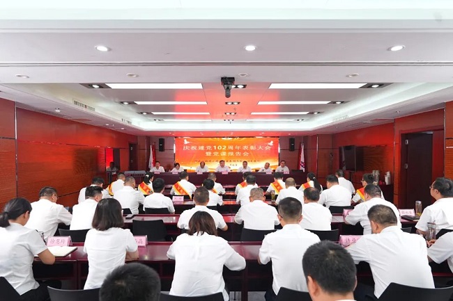 銘記崢嶸歲月,一路光輝前行。6月30日下午,公司召開慶祝建黨102周年表彰大會暨主題教育專題黨課報告會,表彰在黨的建設和生產經營工作中涌現出的一批先進基層黨組織、優秀共產黨員和優秀黨務工作者。公司黨委書記、董事長任杰以《實干擔當促發展 奮發有為建新功 用力譜寫主題教育“實干篇”》為題,講授主題教育專題黨課,進一步弘揚建黨精神、激勵全體員工擔當作為奮發向上。公司黨委副書記干戈主持會議,黨委委員、副總經理、總工程師陳莘宣讀表彰決定,公司領導班子成員出席會議。