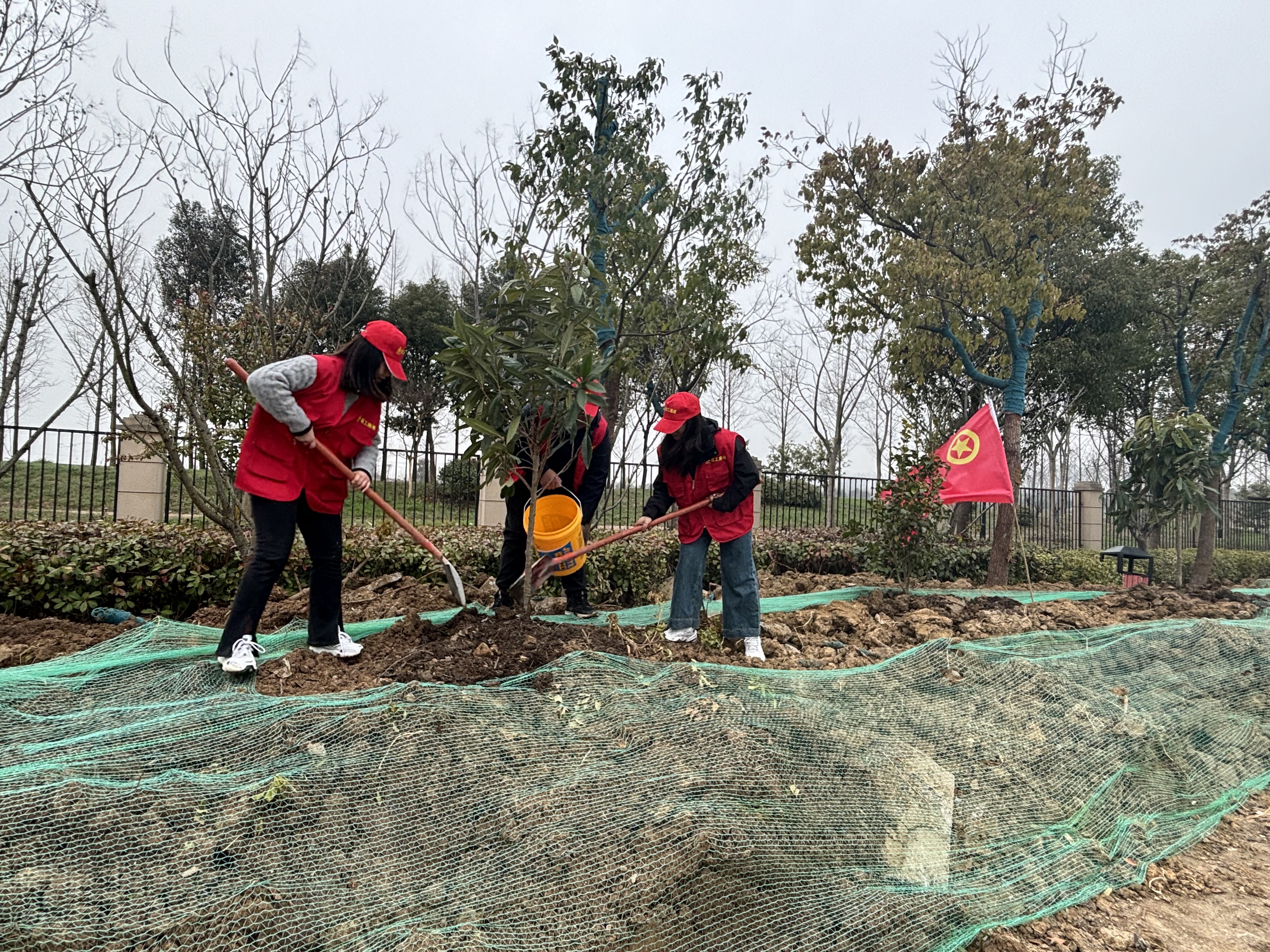活動(dòng)中青年黨員、團(tuán)員積極響應(yīng),一早出發(fā)趕赴淮桐項(xiàng)目駐地,參與人員相互協(xié)作、默契配合,揮鍬鏟土、扶苗填坑、培土澆水,有條不紊地完成了一系列流程,展現(xiàn)了青年們對(duì)綠色美好生活的向往與追求。