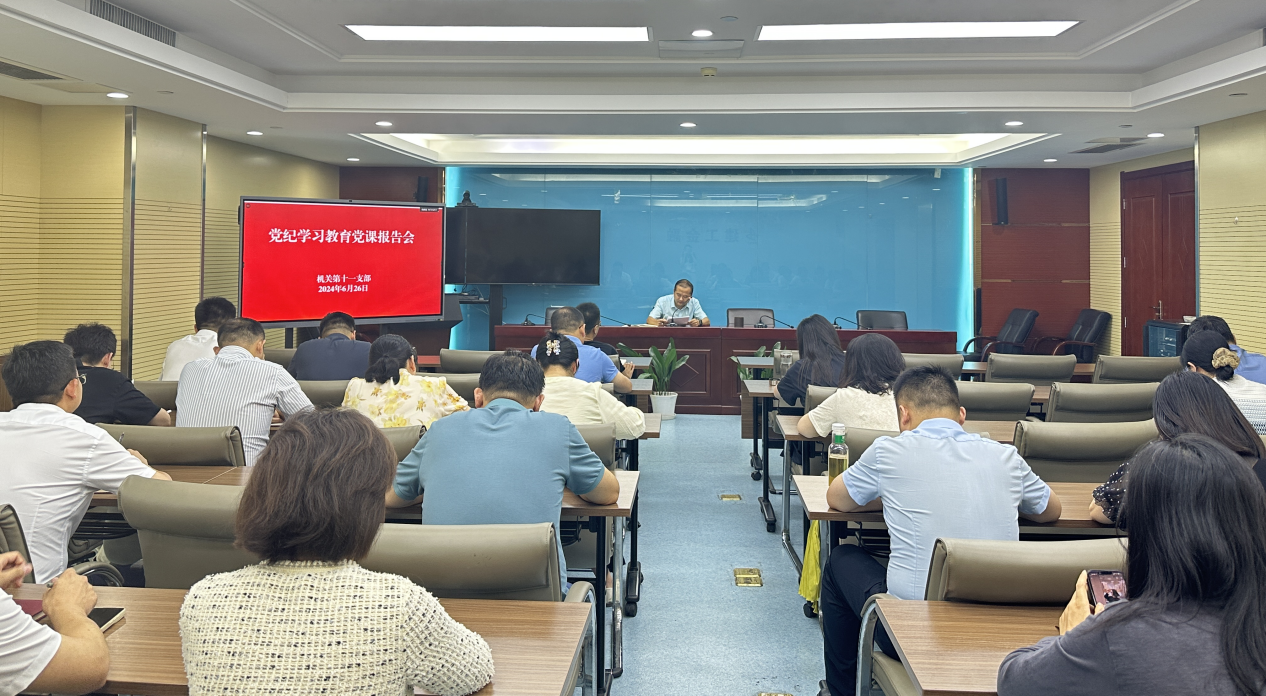 為扎實推動黨紀學習教育走深走實,6月26日機關第十一黨支部(建工金融)組織開展了紀律黨課報告會,黨支部書記王繼成進行授課,全體黨員參加學習。