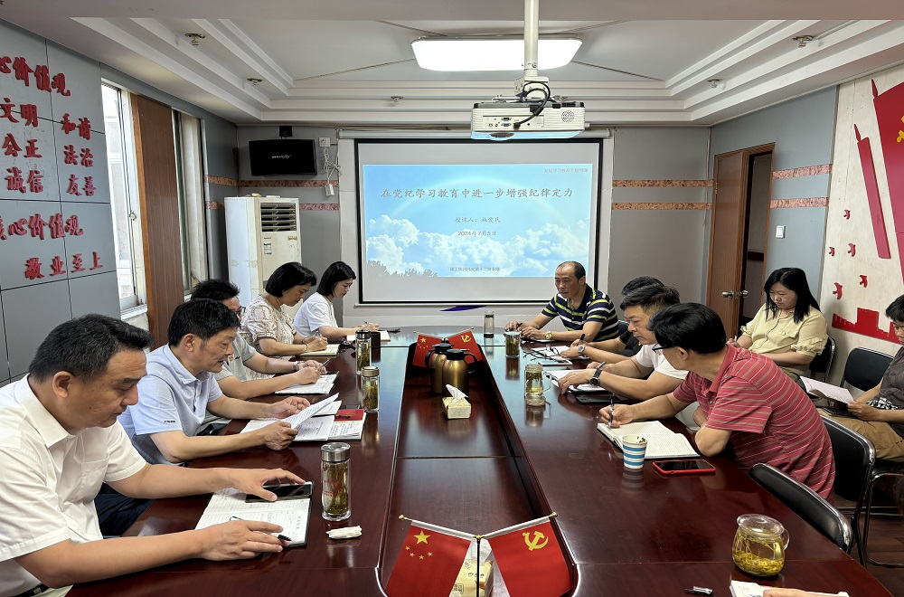 7月5日上午,集團機關(guān)第十二黨支部召開黨員大會。支部書記施愛民以《在黨紀學習教育中進一步增強紀律定力》為題,為全體黨員進行授課。