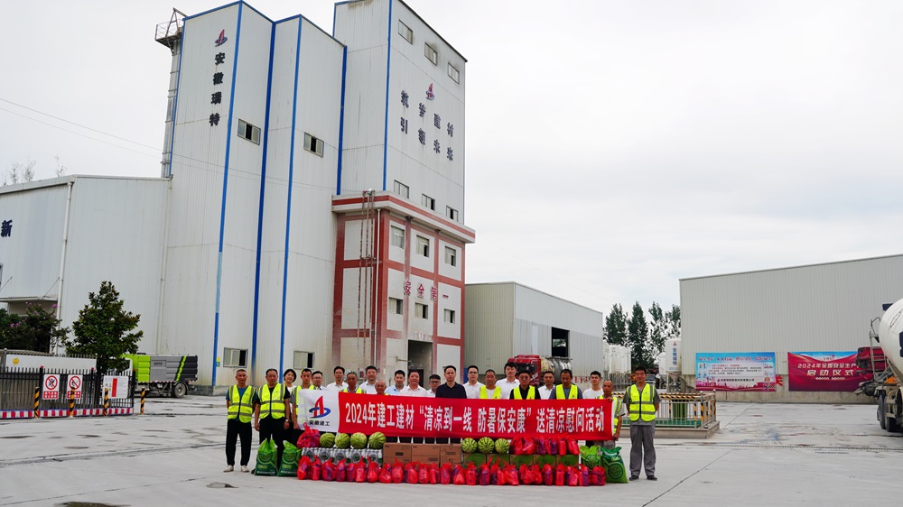 7月16日,建工建材黨委委員、副總經理、工會主席邵佳一行赴蚌埠建材、嘉和建筑開展“清涼到一線 防暑保安康”送清涼慰問活動,為生產一線的職工們送去了夏季藥物、西瓜、清涼飲品等防暑降溫物品,并向堅守崗位的一線職工表示誠摯的問候和感謝。