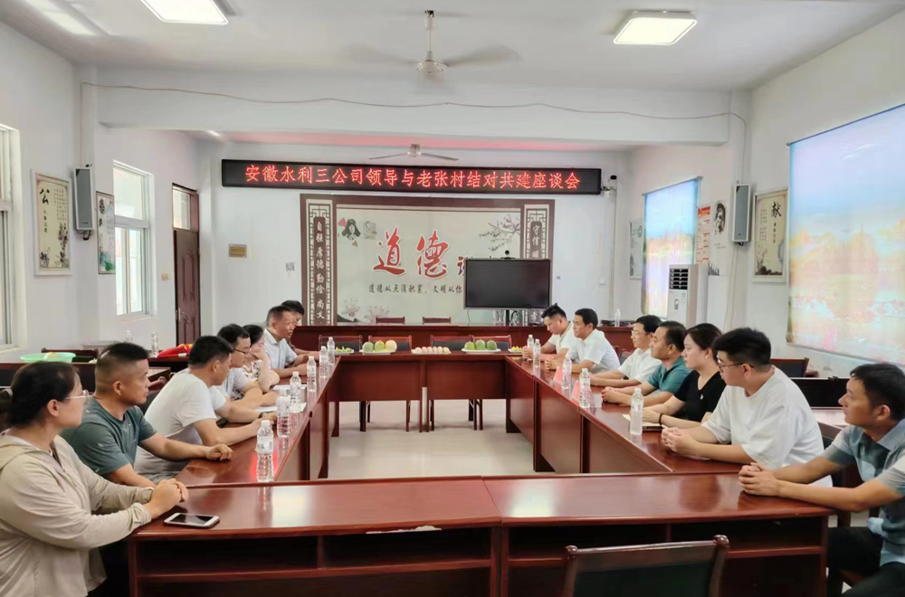 在村黨群服務中心,三公司黨總支同鄉鎮分管負責同志、村兩委、駐村工作隊就老張村產業發展現狀、新時代人才培養、鄉土文化建設特色、綠色生態發展理念、基層黨組織戰斗堡壘作用的發揮及未來規劃進行深入交流。期間村里展示了安徽水利幫扶產出的玉米、香瓜等農產品。雙方就駐村工作事項達成一致意見。會上指出駐村選派干部要深入學習領會習近平總書記關于鄉村全面振興的部署要求,一要提高政治站位,迅速轉變角色,深入組戶,盡快熟悉村情民意和鄉村振興的政策,鞏固拓展脫貧攻堅成果;二要建強村黨組織,明確工作職責,加強團結協作,駐村工作隊與村“兩委”形成合力,找準出力點,打好“配合仗”,用心用情做好為民服務;三要結合老張村村情挖掘資源,積極對接,謀實謀細發展規劃、年度計劃,為加快建設彰顯皖韻水鄉的宜居宜業和美鄉村貢獻團隊力量。