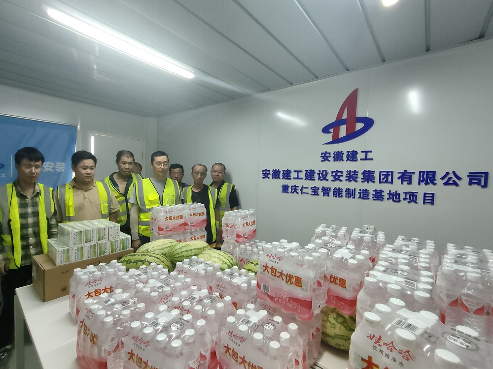 此次慰問先后來到臨湖智能制造產業園、花園大道、岳西中學、安徽建工鋼結構綠色智造(六安)、新橋機場T2航站樓、新橋智能制造產業園、重慶中冶等項目施工一線,將綠豆、白糖、西瓜、礦泉水、藿香正氣水等防暑降溫物資送到高溫下堅守崗位的一線員工手中。對他們的辛勤付出表示感謝,并反復叮囑大家要注意防暑降溫,合理安排施工和休息時間,確保施工安全。活動中,項目安全員還對現場工人進行了夏季防暑降溫、中暑急救知識宣傳教育,有效提高了大家的自我保護意識和能力。