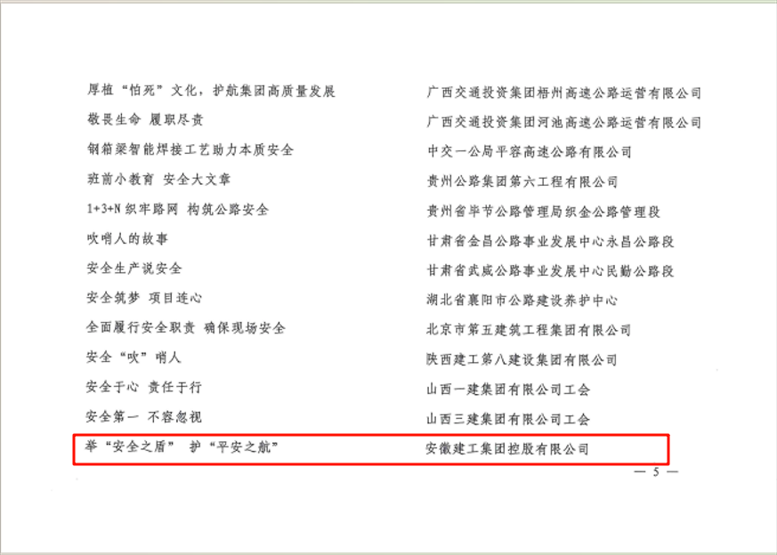 近期,中國海員建設工會全國委員會通報了2024年全國交通建設系統“安康杯”競賽安全管理60項優秀成果,由集團公司和建工三建共同制作的視頻作品《舉“安全之盾” 護“平安之航”》,從全國交通建設系統的253項成果中脫穎而出,獲評“安康杯”競賽安全管理優秀成果。