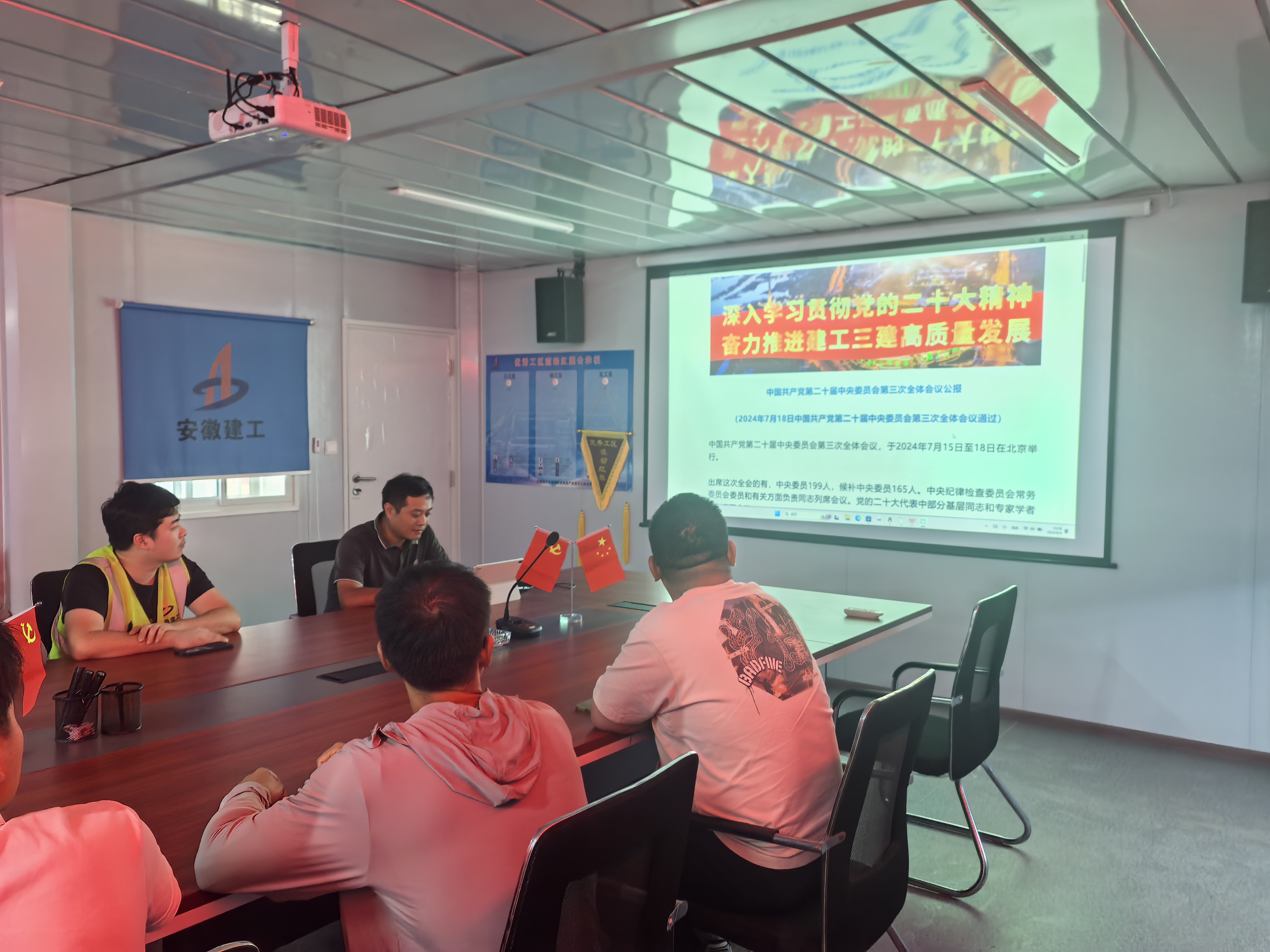 近日,水利交通公司滁州高新區產業升級示范園學苑路項目部組織管理人員開展黨的二十屆三中全會精神專題學習,并開展交流研討。會議強調,項目管理團隊要深入學習貫徹全會精神,不斷增強政治意識和大局觀念,加強科技創新、綠色施工和安全管理,力爭將學苑路打造成為集質量、安全、環保于一體的精品工程,擦亮建工三建“金字招牌”。