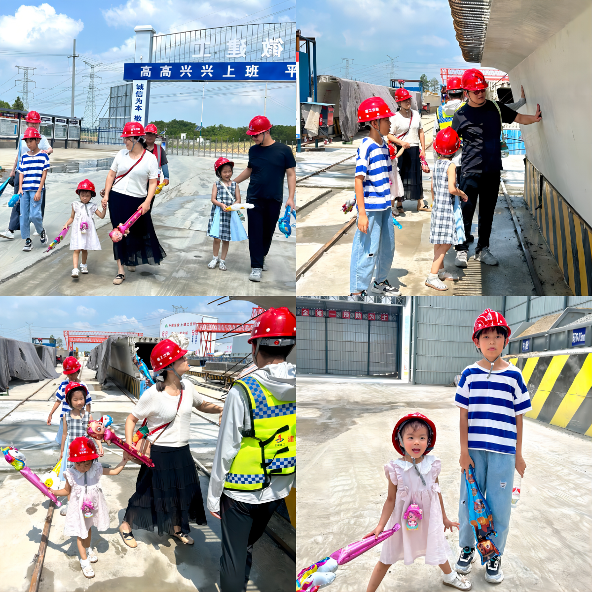 在父母的帶領(lǐng)下,“小候鳥”們戴上安全帽走進(jìn)了“工地大課堂”,實(shí)地參觀了S18寧合高速04標(biāo)項(xiàng)目施工現(xiàn)場、辦公區(qū)與生活區(qū),“零距離”感受了父母的工作環(huán)境,深刻認(rèn)識到了工作的艱辛不易,并為他們扎根一線、艱苦奮斗而感到驕傲與自豪。