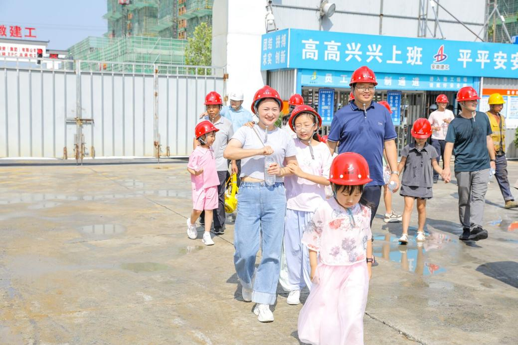 進入潭沖河家園項目施工現(xiàn)場,面對一座座拔地而起的高樓,“小候鳥”們發(fā)出陣陣驚嘆:“爸爸,這大吊車好高??!”“這個磚好重呀!”“這個藍色的外殼跟我們的衣服一樣,是用來保護自己的嗎?”“這個房間就是未來的客廳了嗎?”面對各種各樣好奇的問題,爸爸媽媽化身耐心的老師,逐個解答,在滿足小朋友好奇心的同時,又讓他們學到了很多有用的知識。關于整個項目施工及管理情況,項目執(zhí)行經(jīng)理李楊進行了詳細講解,讓“小候鳥”們身臨其境感受到項目的建設的艱辛和不易,“小候鳥”們紛紛表示爸爸媽媽辛苦了,要珍惜來之不易的幸福生活。