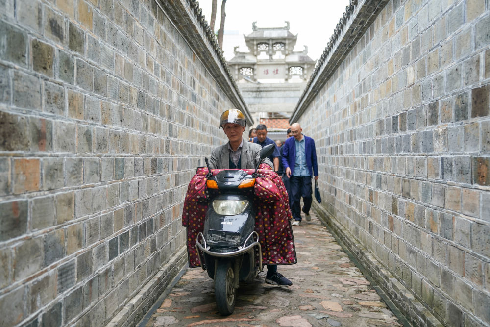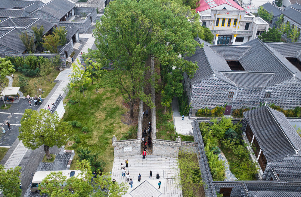 ??↑市民在安徽省安慶市桐城市六尺巷通行。