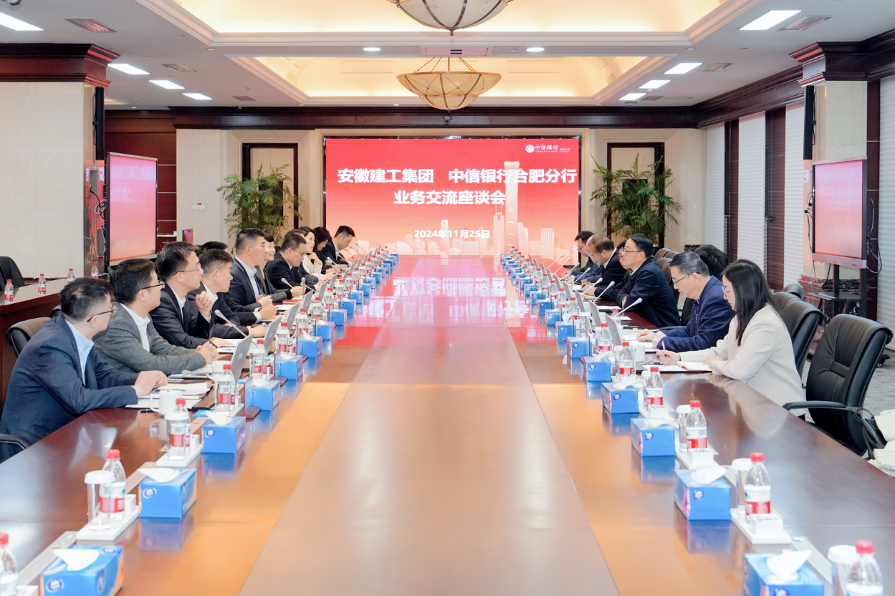 11月25日下午,安徽建工集團黨委書記、董事長楊善斌率隊拜訪中信銀行合肥分行,與中信銀行合肥分行黨委書記、行長錢學洪舉行工作會談。