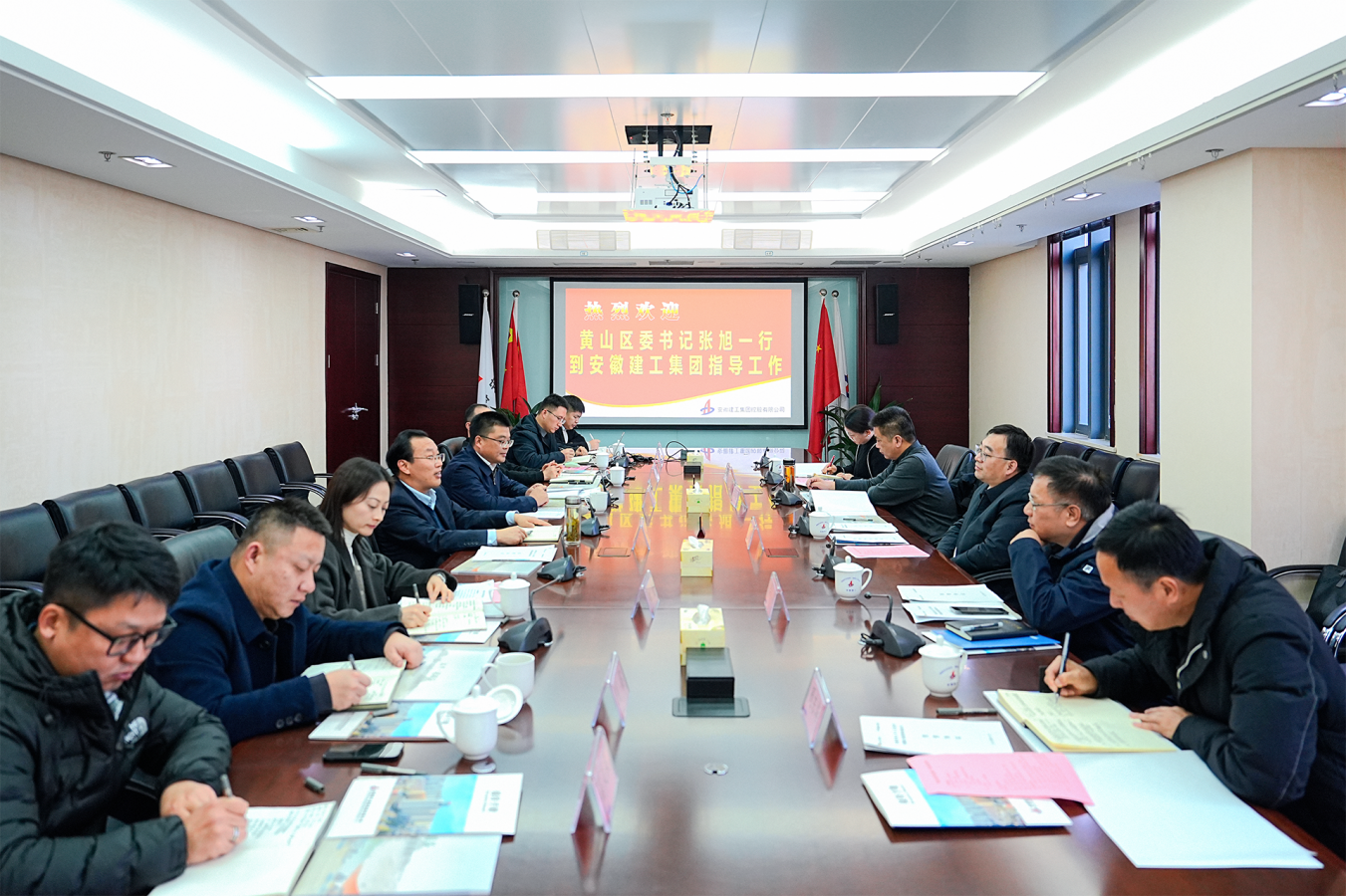 12月24日下午,黃山區委書記張旭一行到訪安徽建工集團,建工股份黨委副書記、副董事長、總經理李有貴熱情接待并舉行工作會談。
